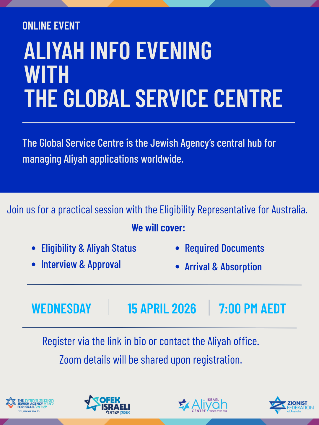 For more details and specifics, please contact: aliyahaustralia@jafi.org